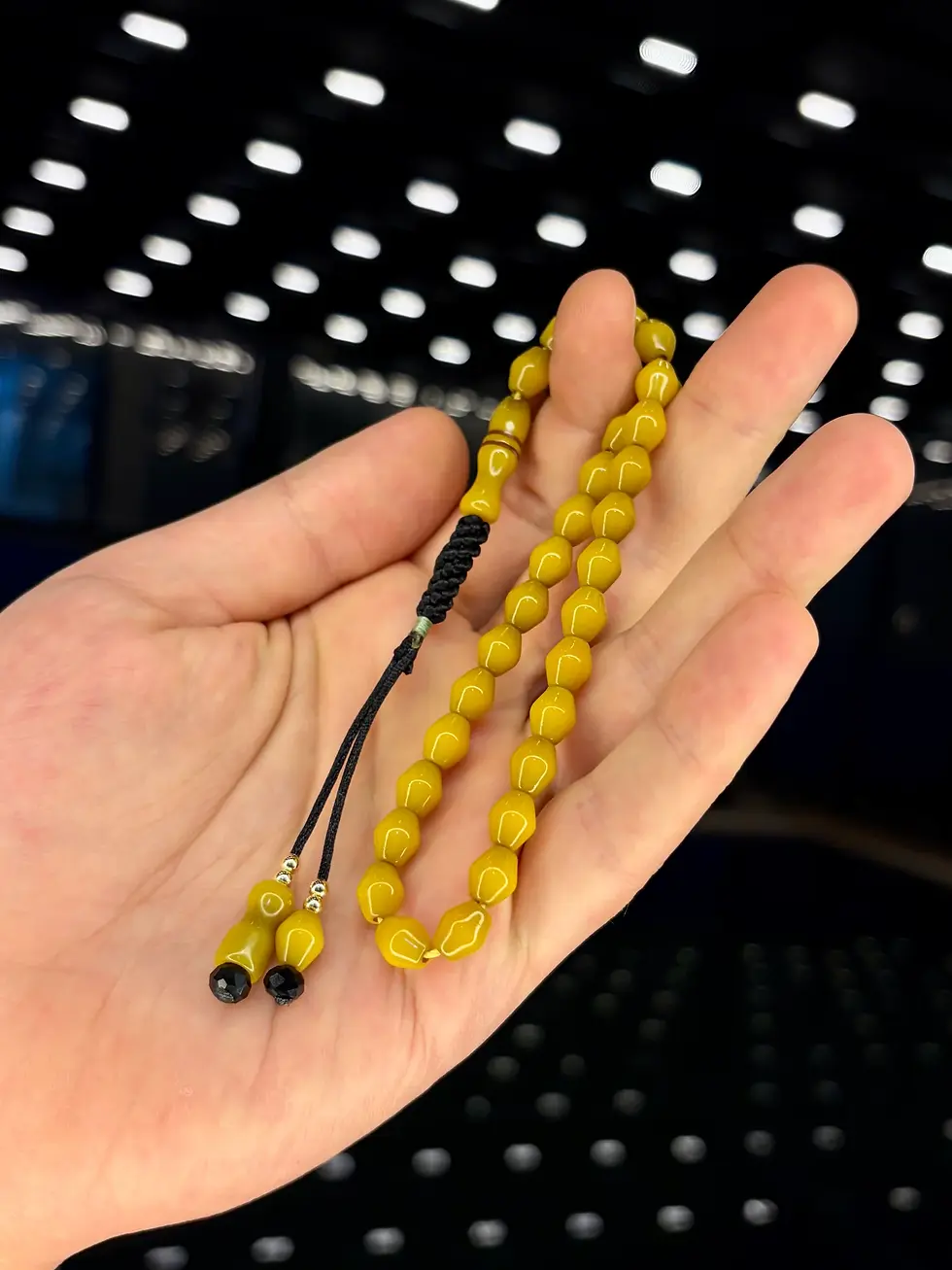 Master-Crafted Braided Honey Mustard Fire Amber Oval Cut Tasbih