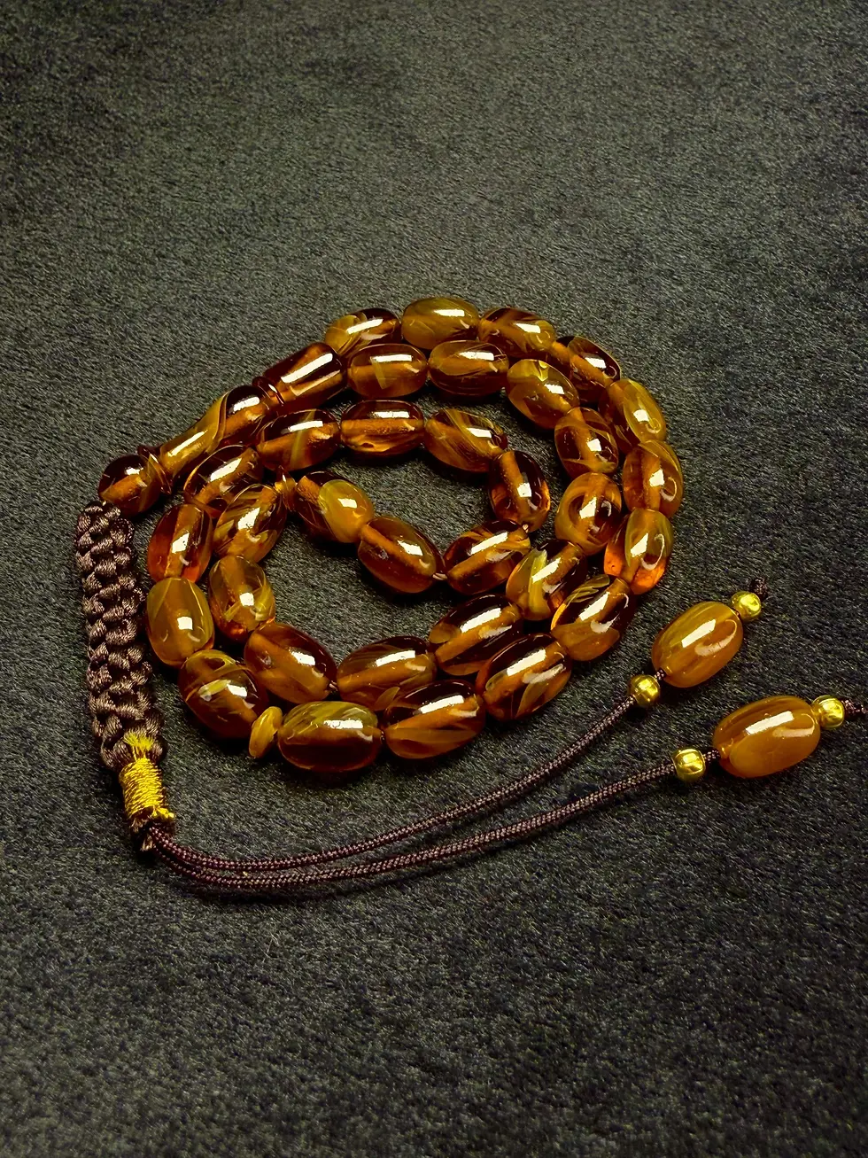 Master-Crafted Braided Dark Amber Pressed Amber Tasbih